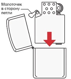 - Используйте только оригинальный бензин Zippo, чтобы обеспечить наилучшую производительность и безопасность.